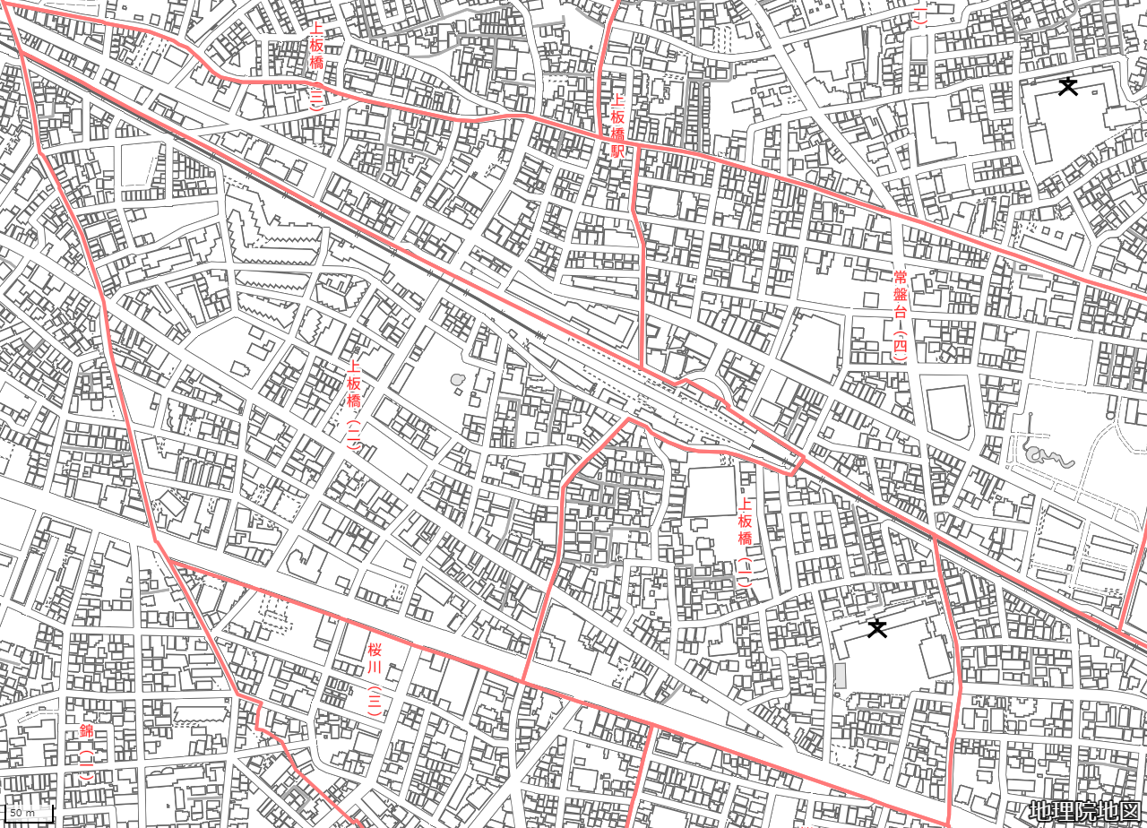 地図の内容は国土地理院が作成した時点の情報を反映しており、実際の現況とは異なる場合があります。現在は存在しない建物や道路、新たに整備された施設などが含まれることがありますので、あらかじめご了承ください。