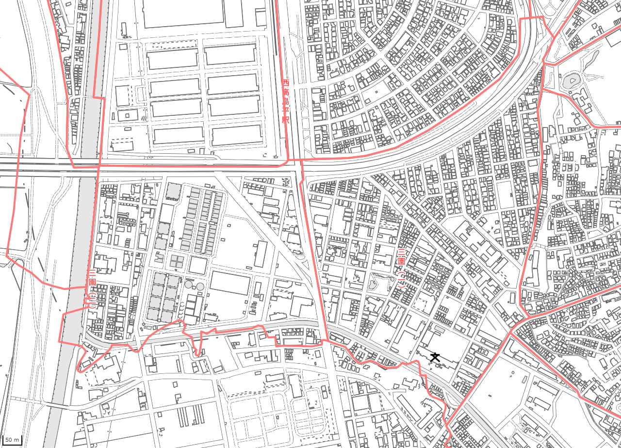 地図の内容は国土地理院が作成した時点の情報を反映しており、実際の現況とは異なる場合があります。現在は存在しない建物や道路、新たに整備された施設などが含まれることがありますので、あらかじめご了承ください。