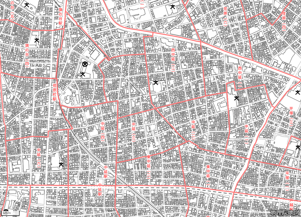 地図の内容は国土地理院が作成した時点の情報を反映しており、実際の現況とは異なる場合があります。現在は存在しない建物や道路、新たに整備された施設などが含まれることがありますので、あらかじめご了承ください。