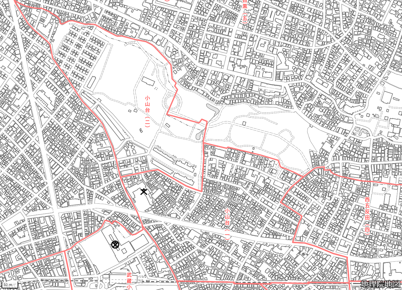 地図の内容は国土地理院が作成した時点の情報を反映しており、実際の現況とは異なる場合があります。現在は存在しない建物や道路、新たに整備された施設などが含まれることがありますので、あらかじめご了承ください。