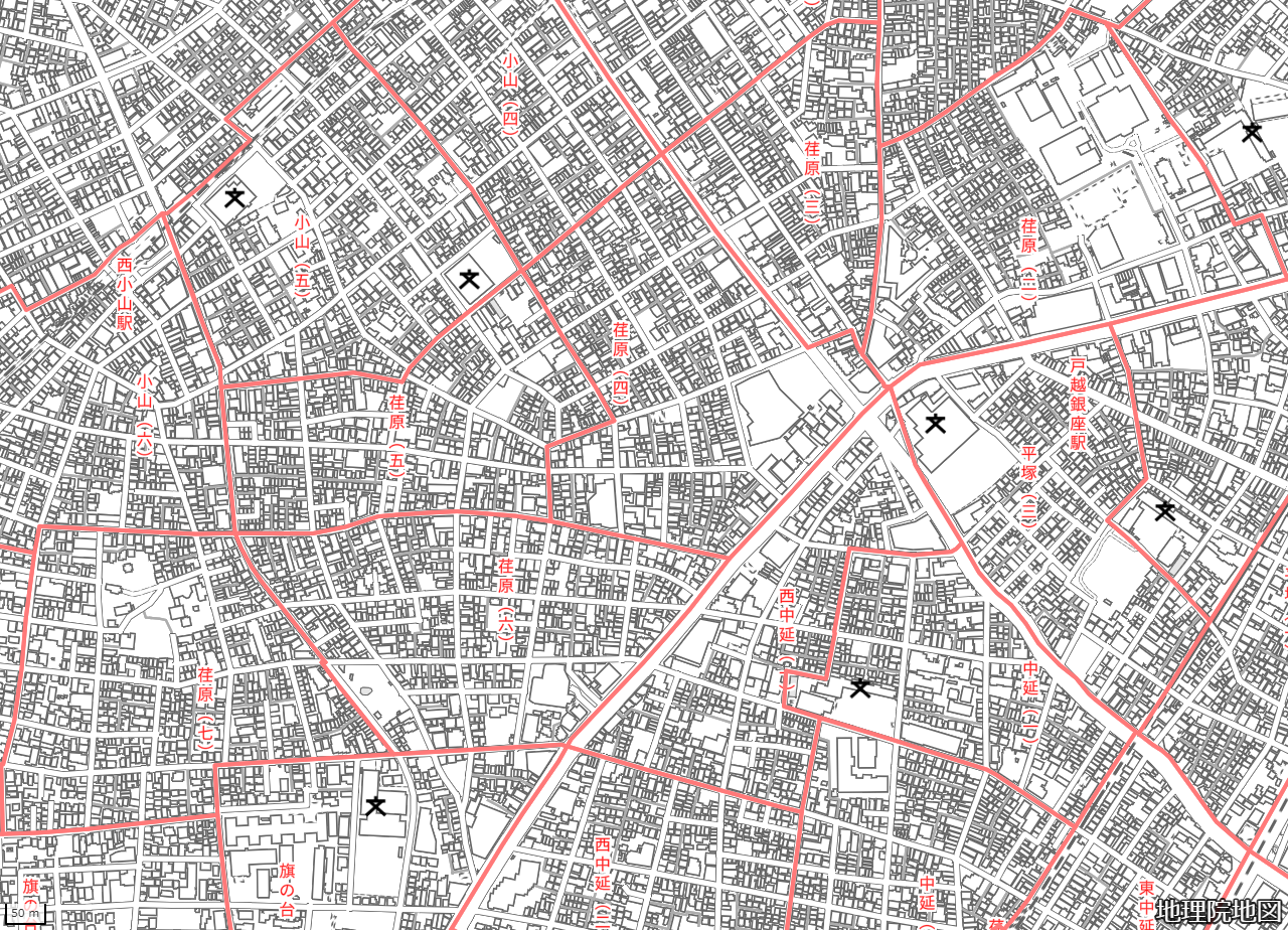 地図の内容は国土地理院が作成した時点の情報を反映しており、実際の現況とは異なる場合があります。現在は存在しない建物や道路、新たに整備された施設などが含まれることがありますので、あらかじめご了承ください。