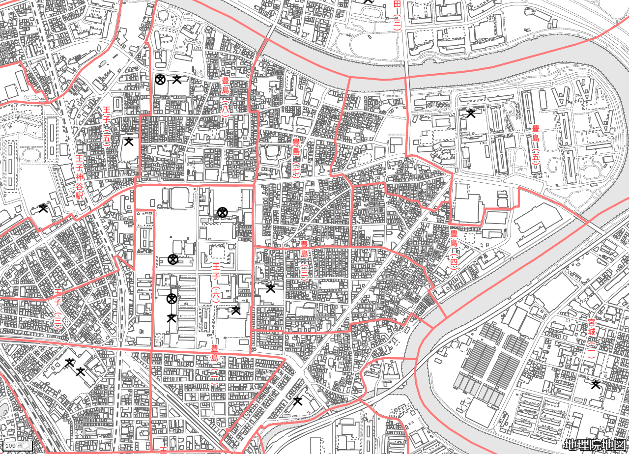 地図の内容は国土地理院が作成した時点の情報を反映しており、実際の現況とは異なる場合があります。現在は存在しない建物や道路、新たに整備された施設などが含まれることがありますので、あらかじめご了承ください。