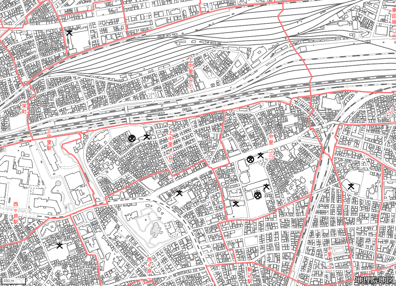 地図の内容は国土地理院が作成した時点の情報を反映しており、実際の現況とは異なる場合があります。現在は存在しない建物や道路、新たに整備された施設などが含まれることがありますので、あらかじめご了承ください。