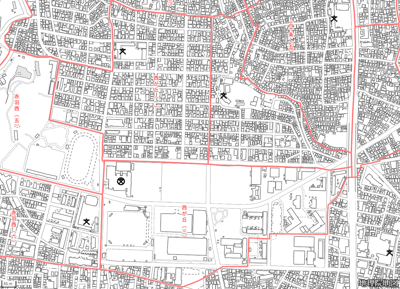 地図の内容は国土地理院が作成した時点の情報を反映しており、実際の現況とは異なる場合があります。現在は存在しない建物や道路、新たに整備された施設などが含まれることがありますので、あらかじめご了承ください。
