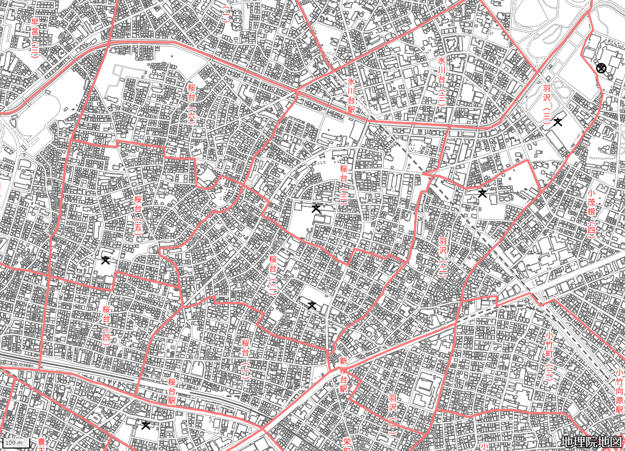 地図の内容は国土地理院が作成した時点の情報を反映しており、実際の現況とは異なる場合があります。現在は存在しない建物や道路、新たに整備された施設などが含まれることがありますので、あらかじめご了承ください。