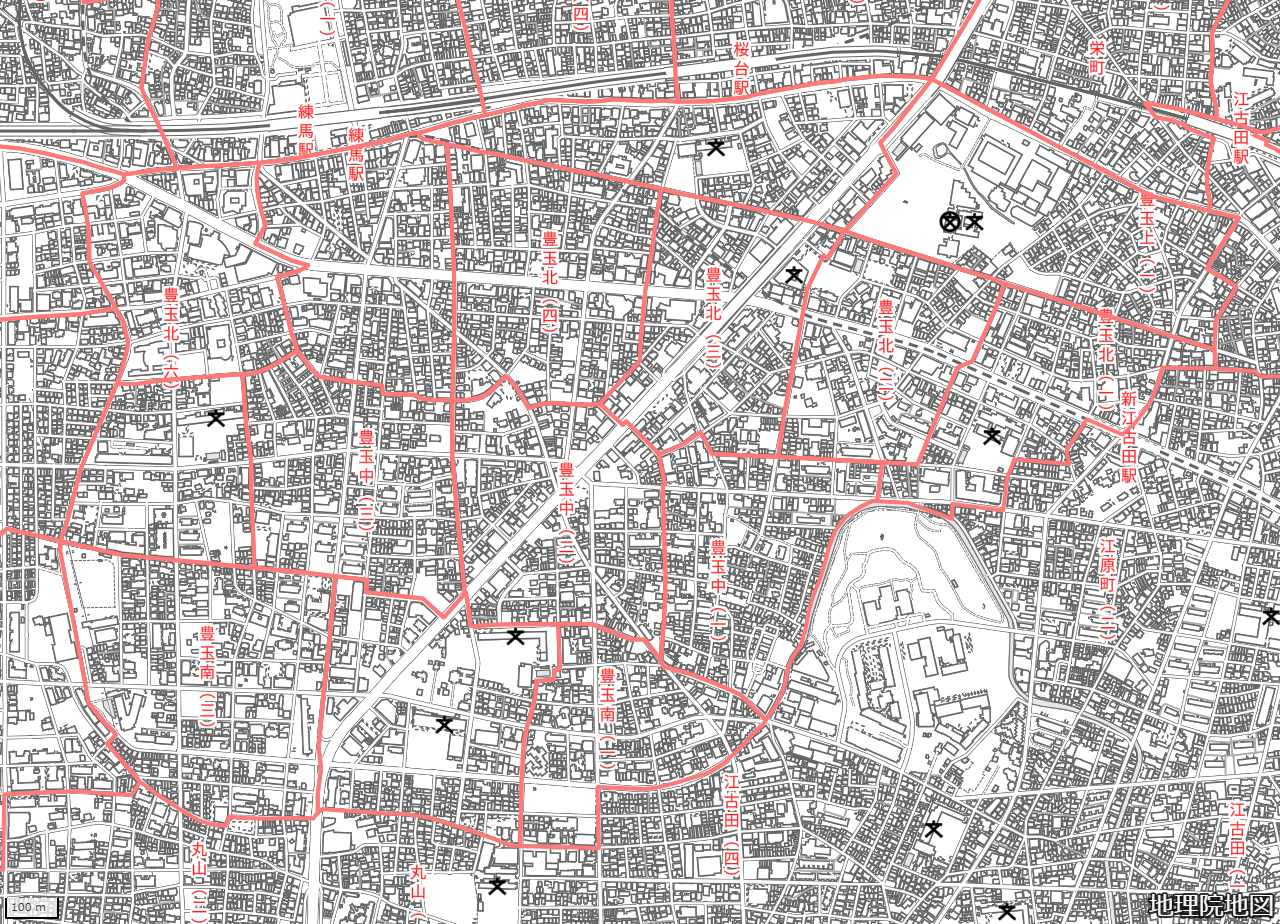 地図の内容は国土地理院が作成した時点の情報を反映しており、実際の現況とは異なる場合があります。現在は存在しない建物や道路、新たに整備された施設などが含まれることがありますので、あらかじめご了承ください。