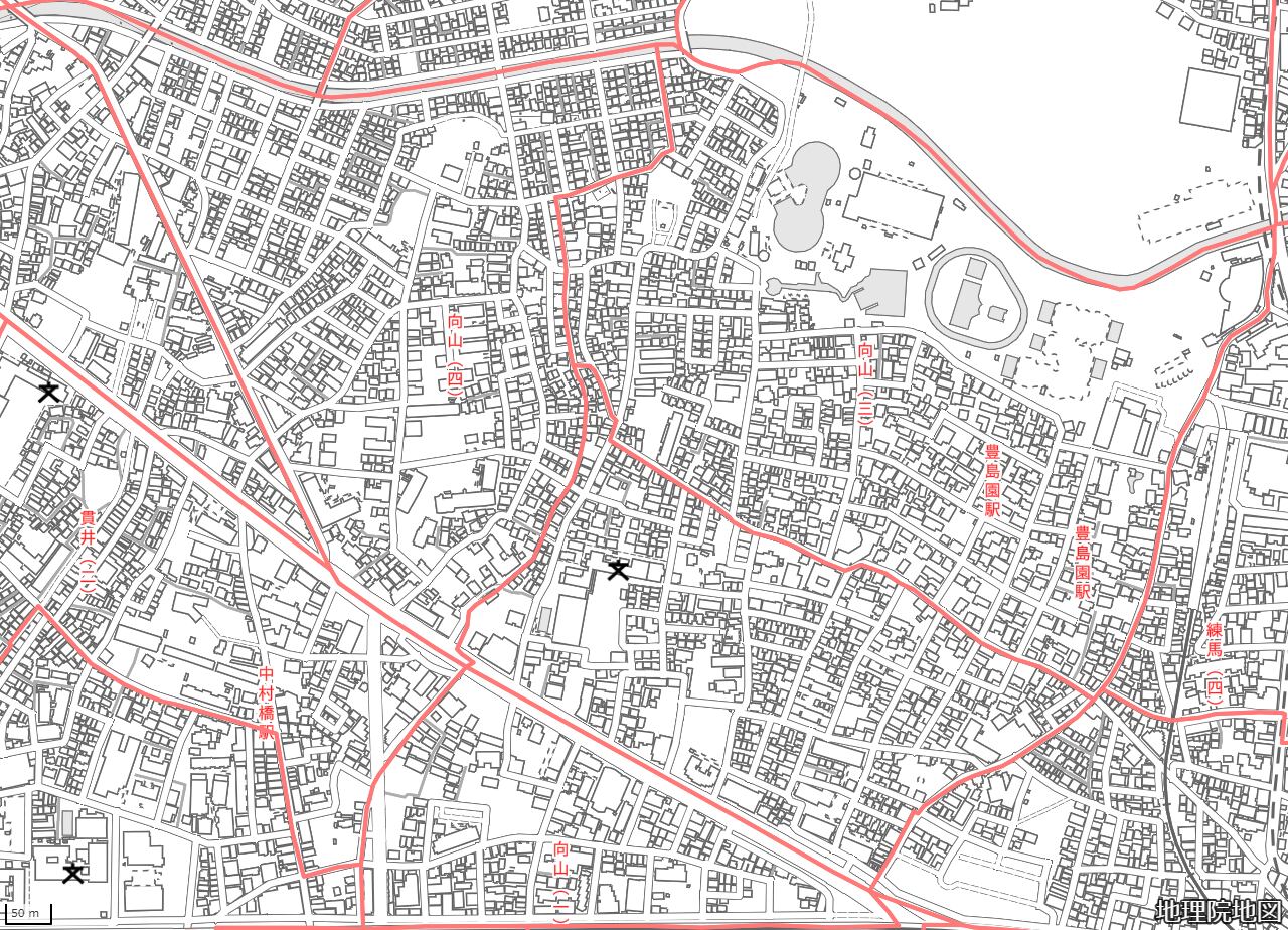 地図の内容は国土地理院が作成した時点の情報を反映しており、実際の現況とは異なる場合があります。現在は存在しない建物や道路、新たに整備された施設などが含まれることがありますので、あらかじめご了承ください。