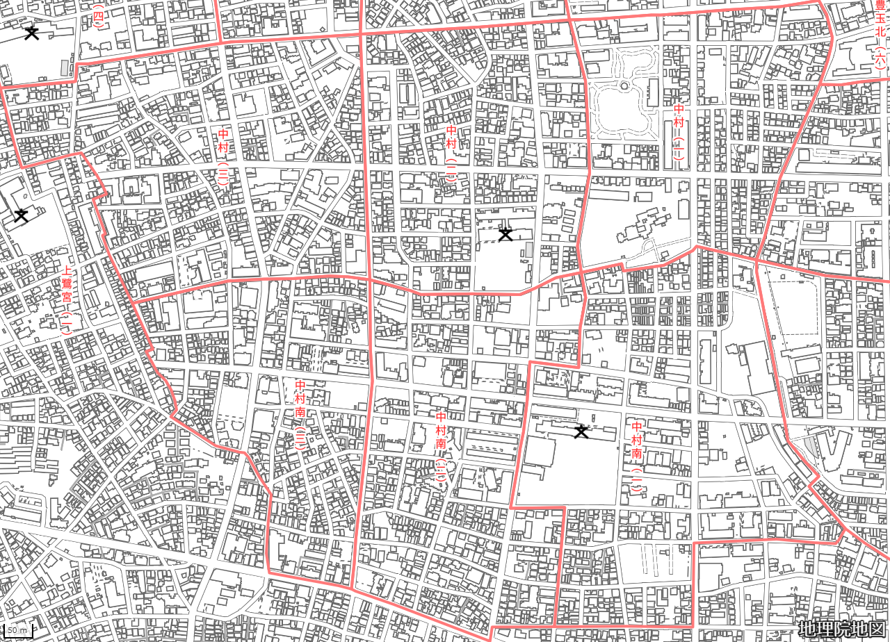地図の内容は国土地理院が作成した時点の情報を反映しており、実際の現況とは異なる場合があります。現在は存在しない建物や道路、新たに整備された施設などが含まれることがありますので、あらかじめご了承ください。