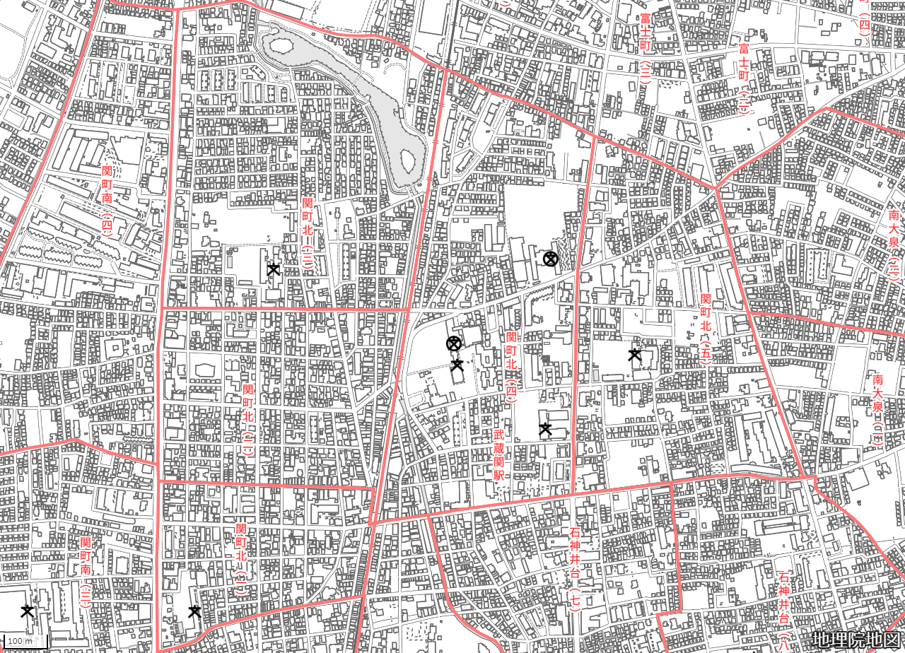地図の内容は国土地理院が作成した時点の情報を反映しており、実際の現況とは異なる場合があります。現在は存在しない建物や道路、新たに整備された施設などが含まれることがありますので、あらかじめご了承ください。