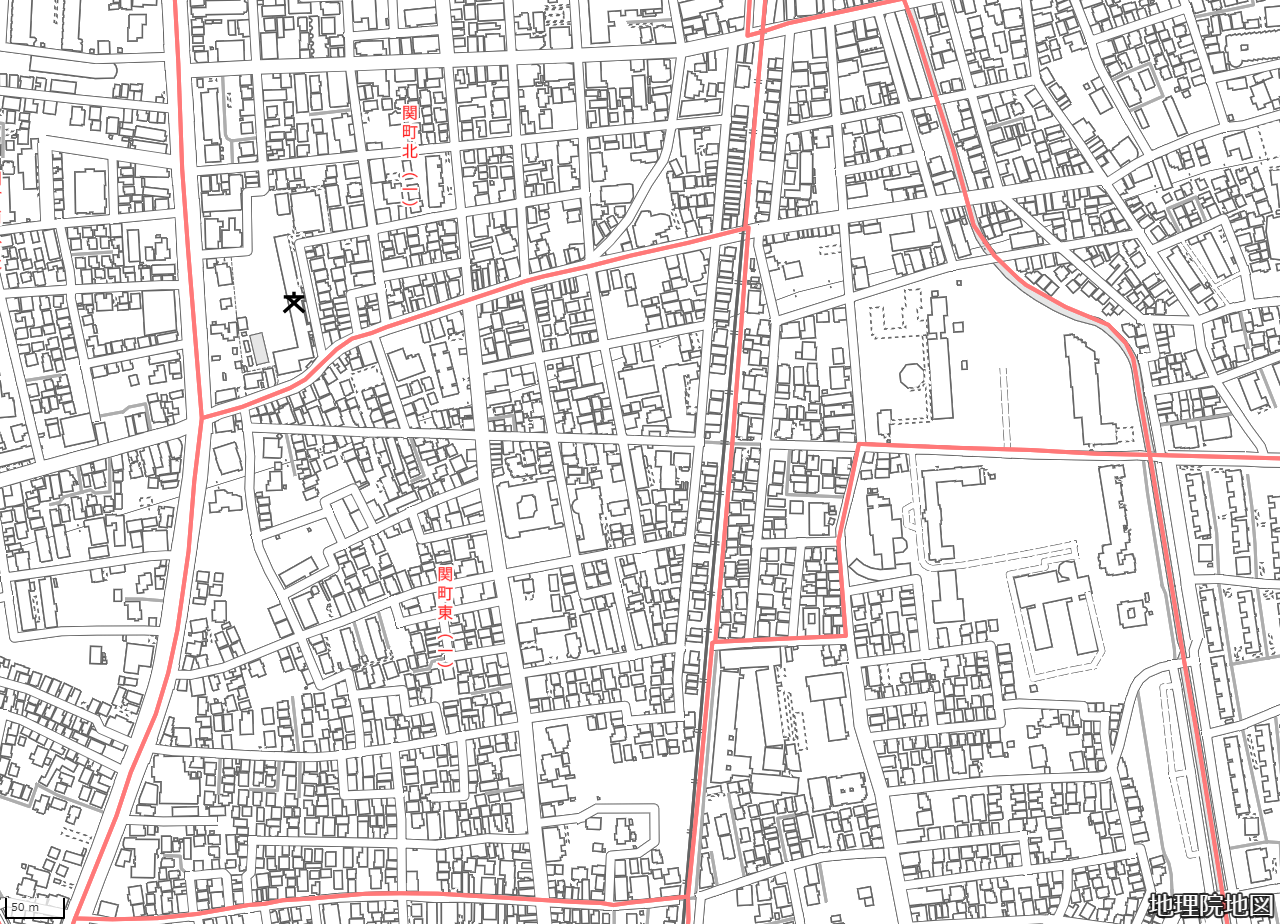 地図の内容は国土地理院が作成した時点の情報を反映しており、実際の現況とは異なる場合があります。現在は存在しない建物や道路、新たに整備された施設などが含まれることがありますので、あらかじめご了承ください。