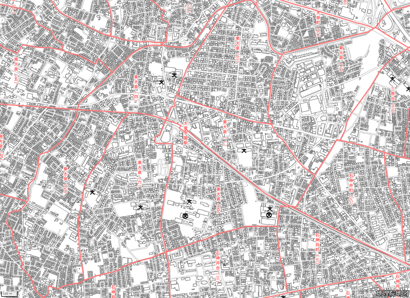 地図の内容は国土地理院が作成した時点の情報を反映しており、実際の現況とは異なる場合があります。現在は存在しない建物や道路、新たに整備された施設などが含まれることがありますので、あらかじめご了承ください。