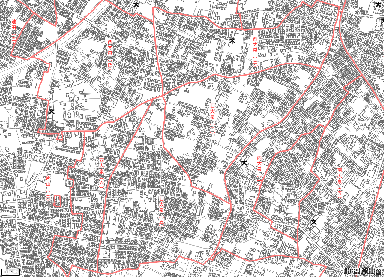 地図の内容は国土地理院が作成した時点の情報を反映しており、実際の現況とは異なる場合があります。現在は存在しない建物や道路、新たに整備された施設などが含まれることがありますので、あらかじめご了承ください。