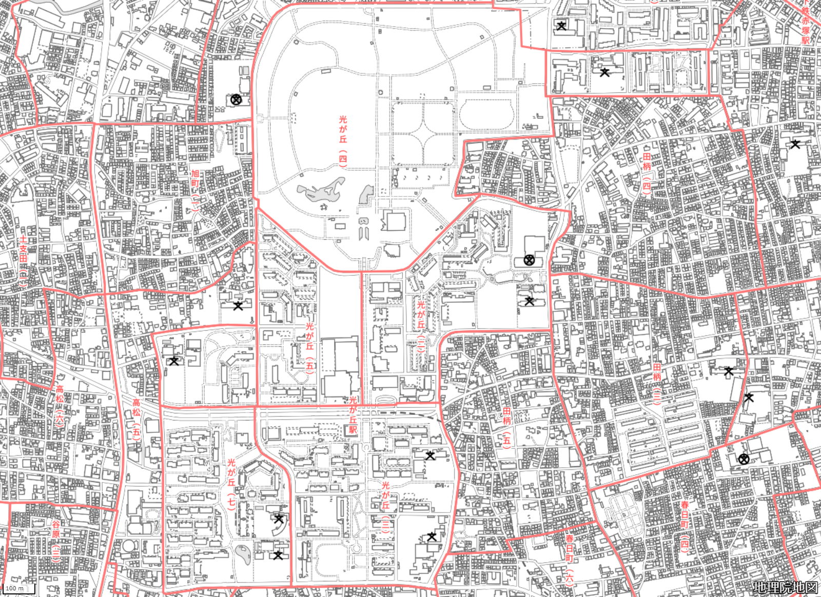 地図の内容は国土地理院が作成した時点の情報を反映しており、実際の現況とは異なる場合があります。現在は存在しない建物や道路、新たに整備された施設などが含まれることがありますので、あらかじめご了承ください。