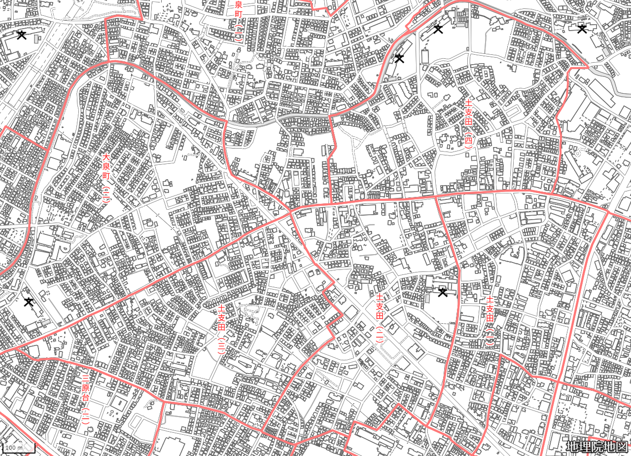 地図の内容は国土地理院が作成した時点の情報を反映しており、実際の現況とは異なる場合があります。現在は存在しない建物や道路、新たに整備された施設などが含まれることがありますので、あらかじめご了承ください。