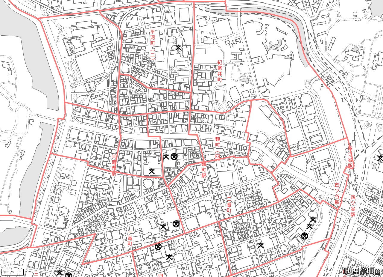 地図の内容は国土地理院が作成した時点の情報を反映しており、実際の現況とは異なる場合があります。現在は存在しない建物や道路、新たに整備された施設などが含まれることがありますので、あらかじめご了承ください。