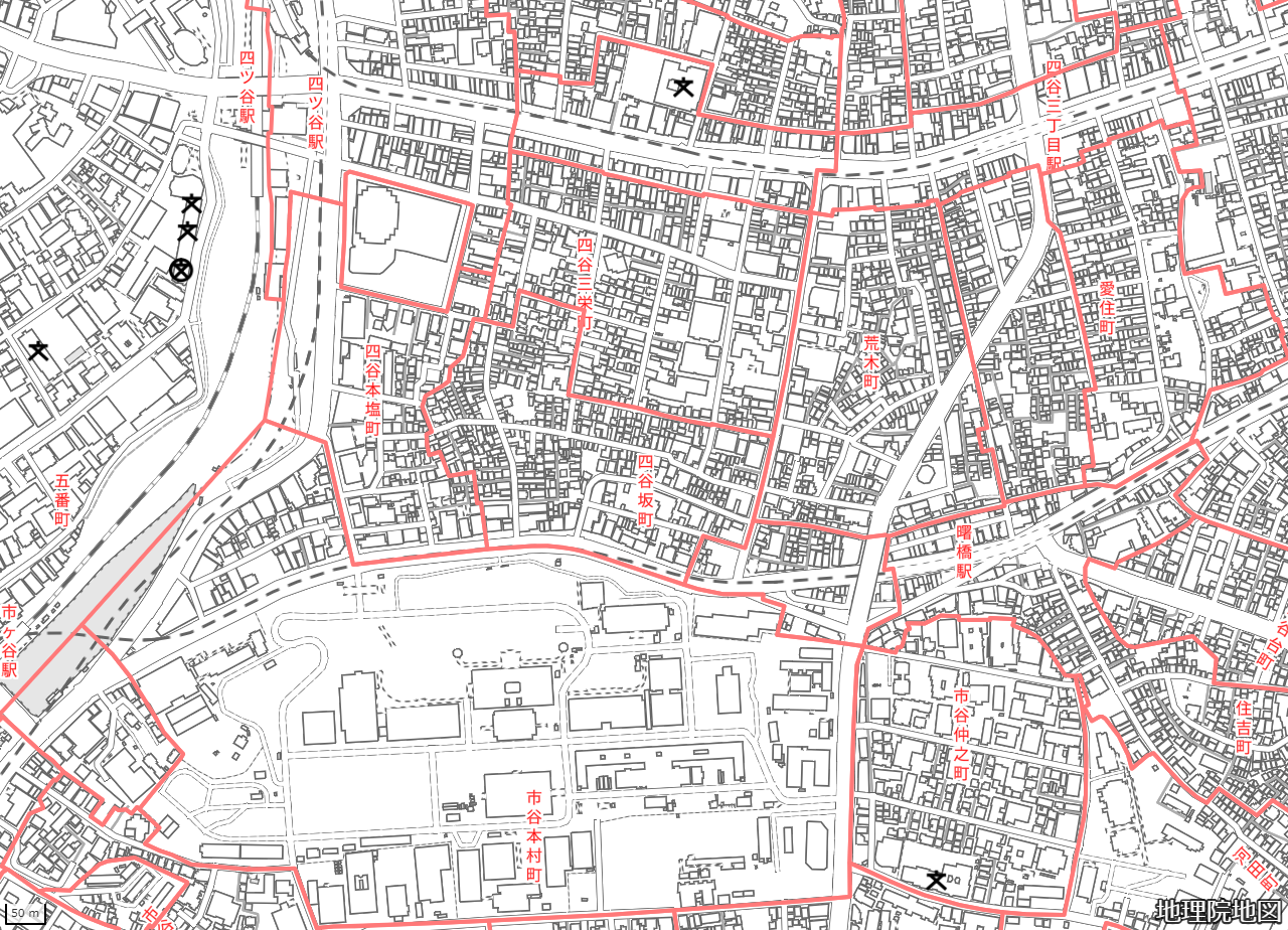 地図の内容は国土地理院が作成した時点の情報を反映しており、実際の現況とは異なる場合があります。現在は存在しない建物や道路、新たに整備された施設などが含まれることがありますので、あらかじめご了承ください。