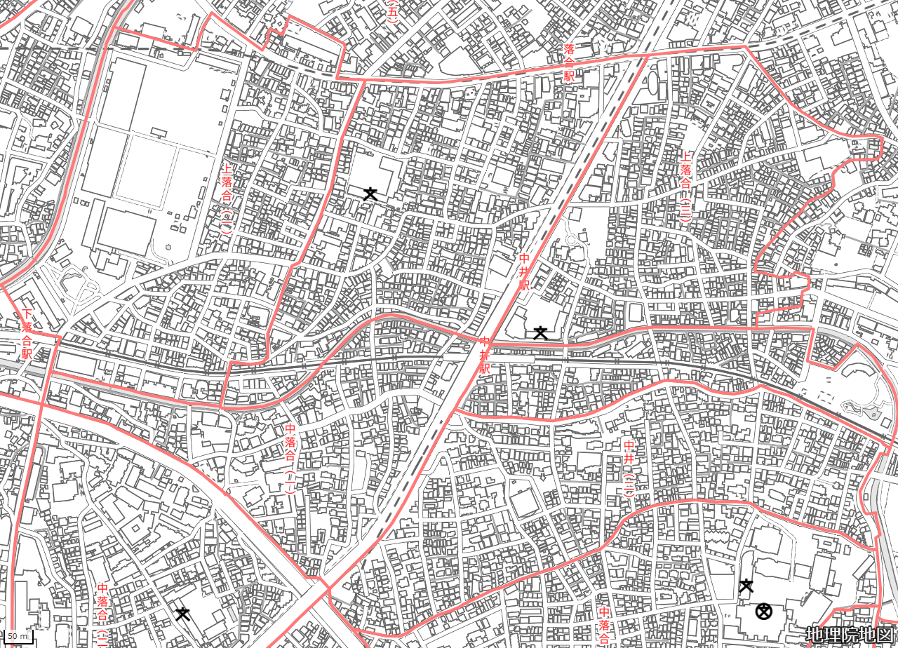 地図の内容は国土地理院が作成した時点の情報を反映しており、実際の現況とは異なる場合があります。現在は存在しない建物や道路、新たに整備された施設などが含まれることがありますので、あらかじめご了承ください。