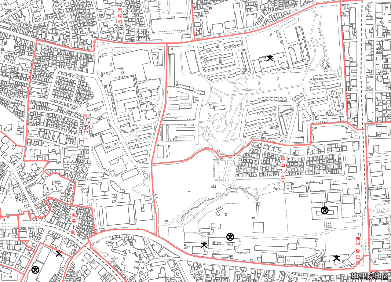 地図の内容は国土地理院が作成した時点の情報を反映しており、実際の現況とは異なる場合があります。現在は存在しない建物や道路、新たに整備された施設などが含まれることがありますので、あらかじめご了承ください。