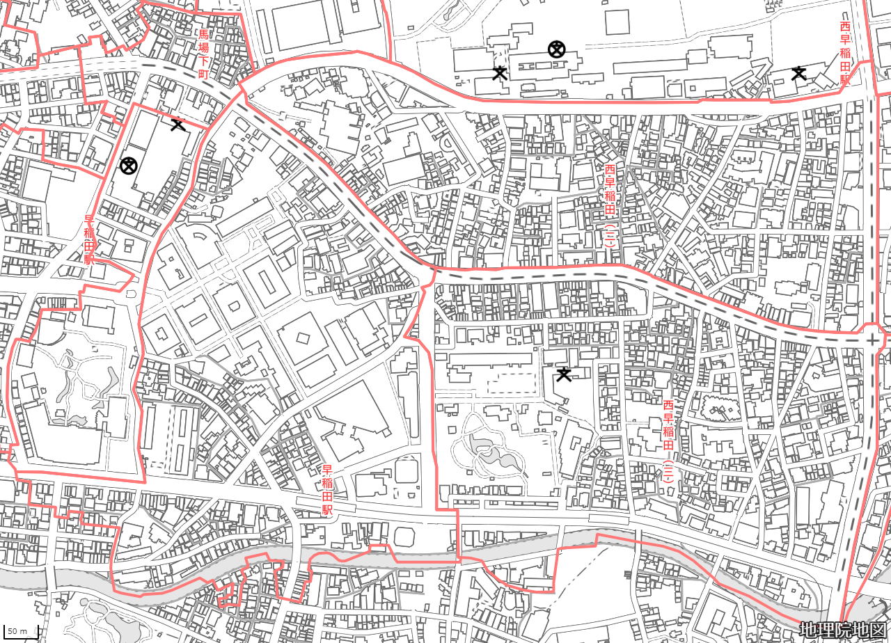 地図の内容は国土地理院が作成した時点の情報を反映しており、実際の現況とは異なる場合があります。現在は存在しない建物や道路、新たに整備された施設などが含まれることがありますので、あらかじめご了承ください。
