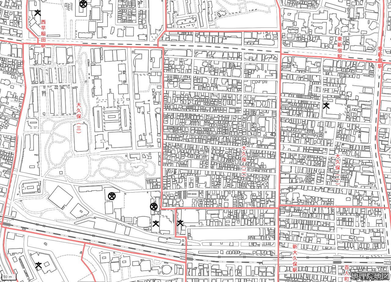 地図の内容は国土地理院が作成した時点の情報を反映しており、実際の現況とは異なる場合があります。現在は存在しない建物や道路、新たに整備された施設などが含まれることがありますので、あらかじめご了承ください。