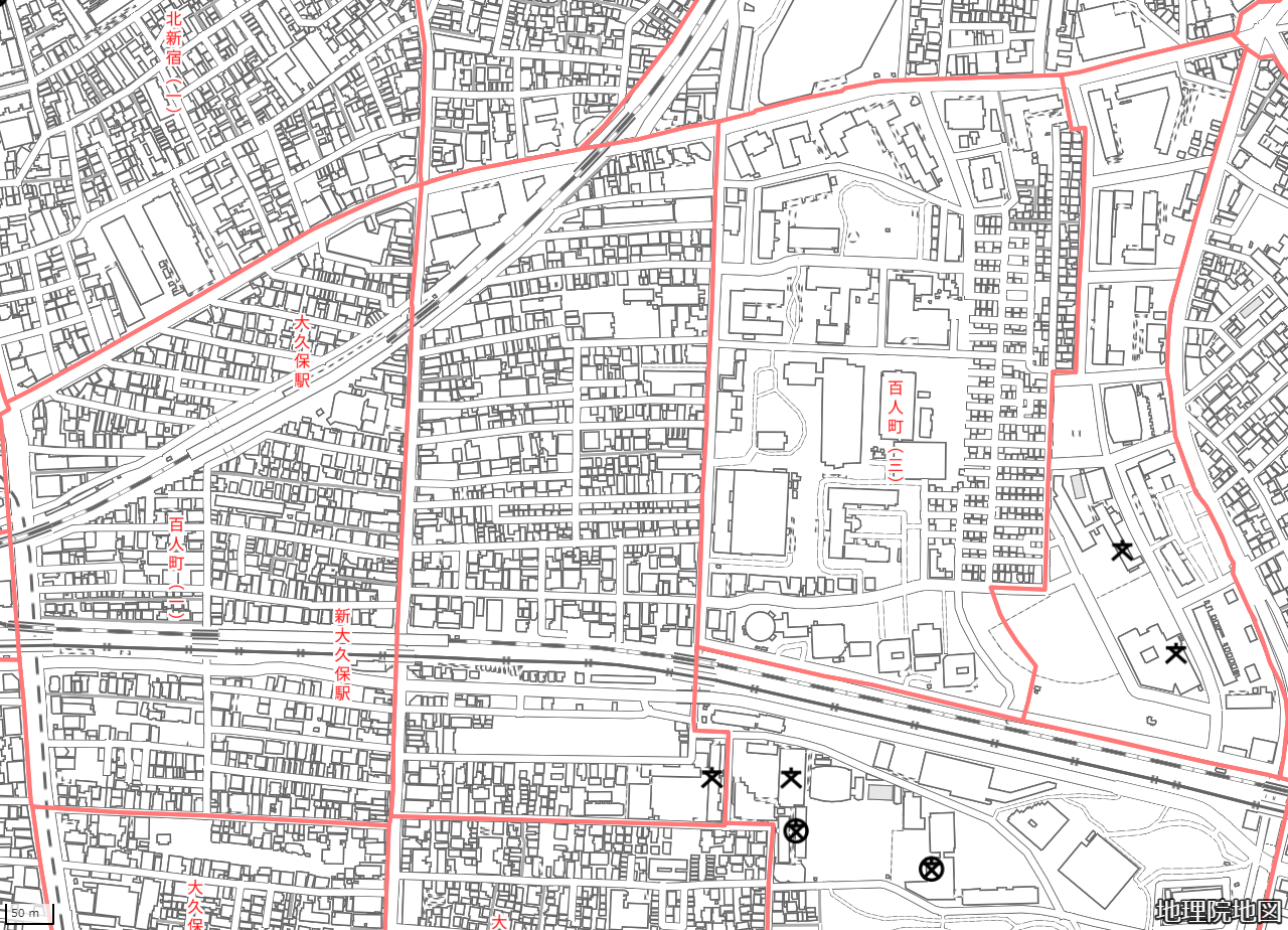 地図の内容は国土地理院が作成した時点の情報を反映しており、実際の現況とは異なる場合があります。現在は存在しない建物や道路、新たに整備された施設などが含まれることがありますので、あらかじめご了承ください。