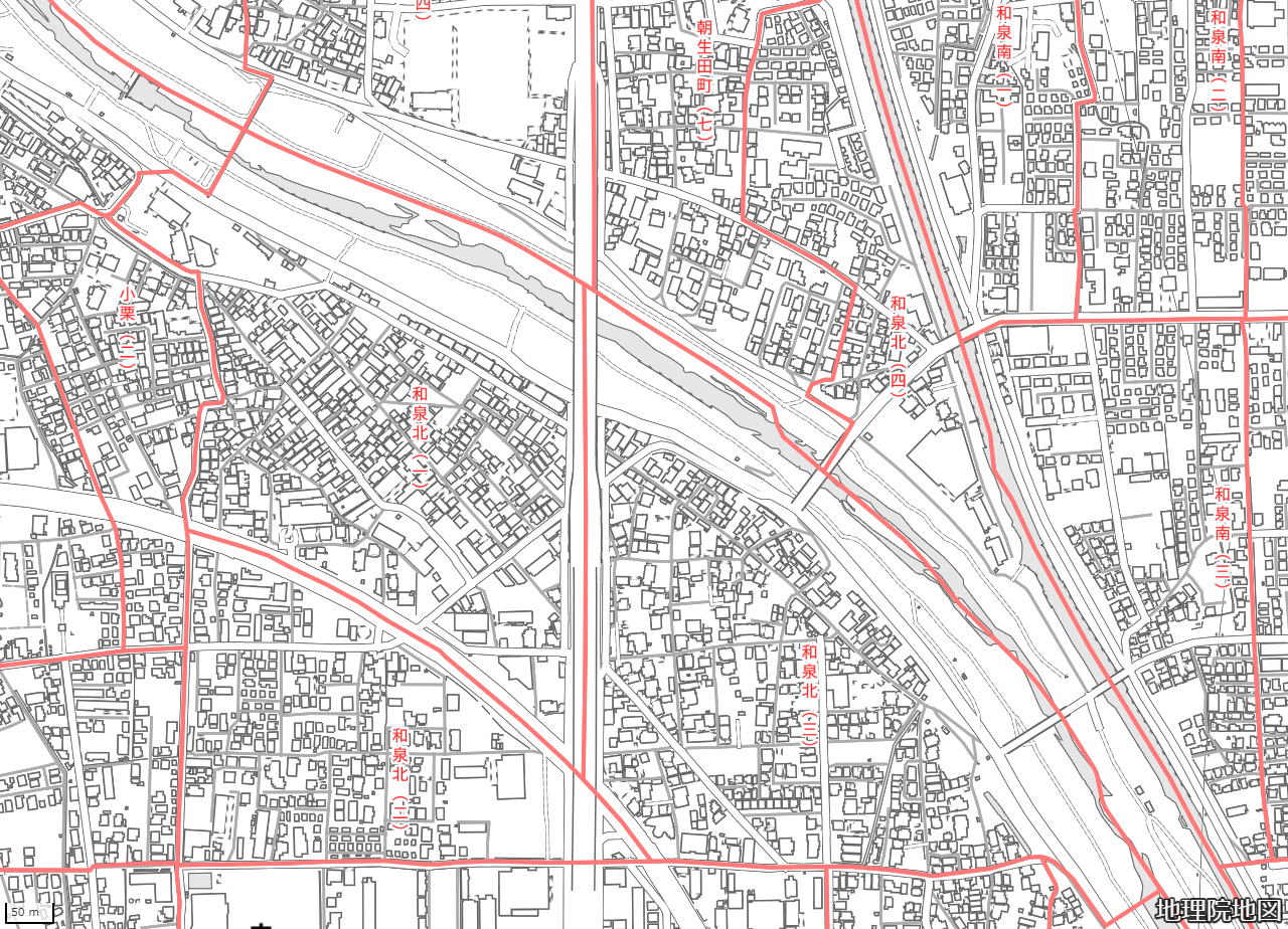 地図の内容は国土地理院が作成した時点の情報を反映しており、実際の現況とは異なる場合があります。現在は存在しない建物や道路、新たに整備された施設などが含まれることがありますので、あらかじめご了承ください。