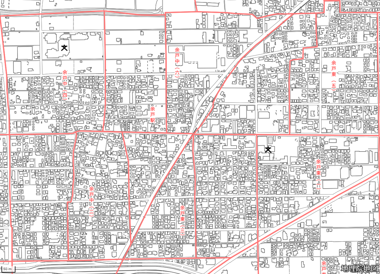 地図の内容は国土地理院が作成した時点の情報を反映しており、実際の現況とは異なる場合があります。現在は存在しない建物や道路、新たに整備された施設などが含まれることがありますので、あらかじめご了承ください。