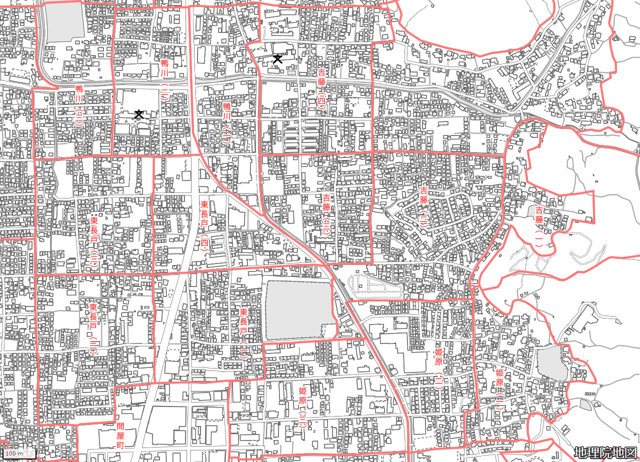 地図の内容は国土地理院が作成した時点の情報を反映しており、実際の現況とは異なる場合があります。現在は存在しない建物や道路、新たに整備された施設などが含まれることがありますので、あらかじめご了承ください。