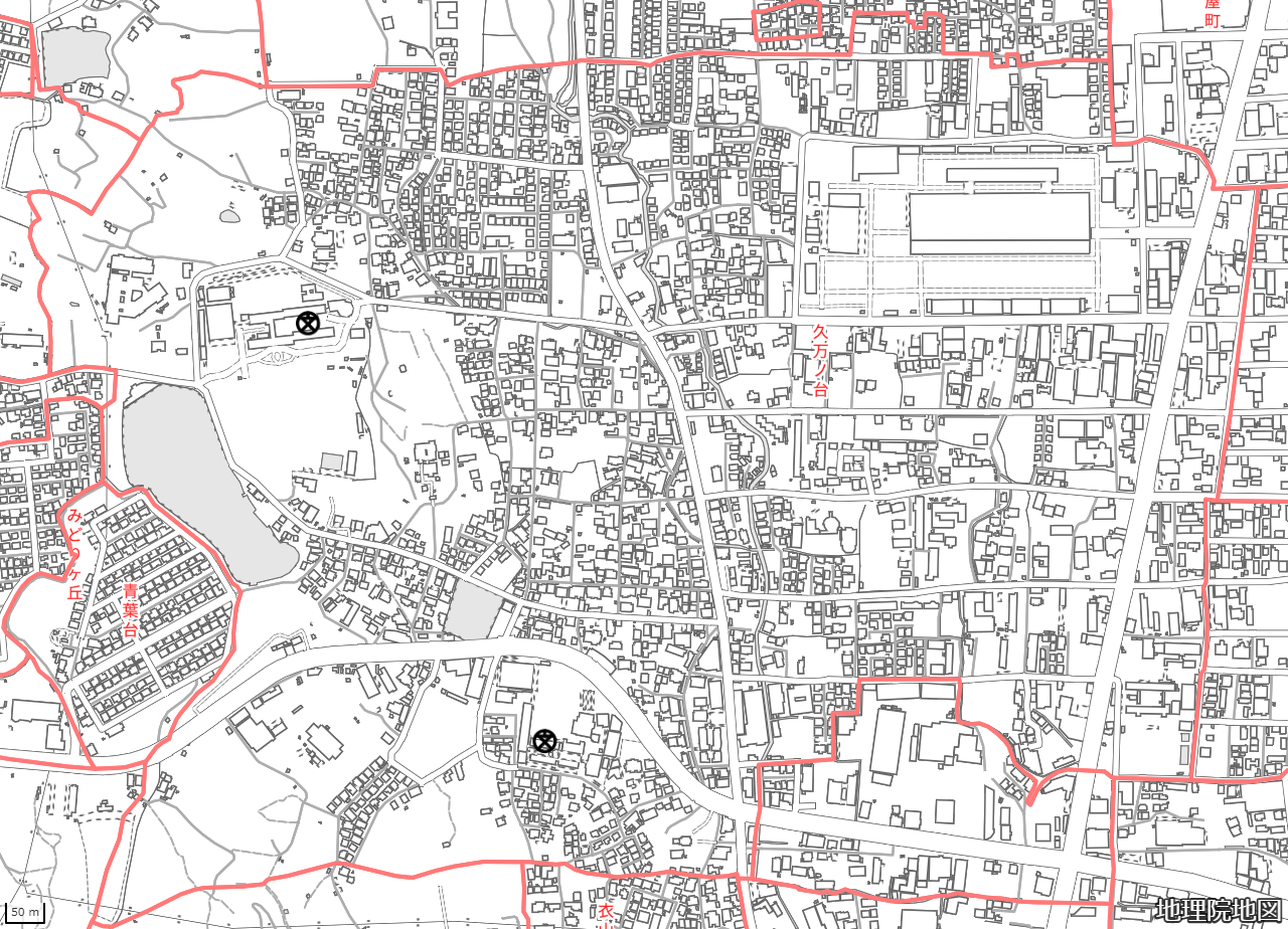 地図の内容は国土地理院が作成した時点の情報を反映しており、実際の現況とは異なる場合があります。現在は存在しない建物や道路、新たに整備された施設などが含まれることがありますので、あらかじめご了承ください。