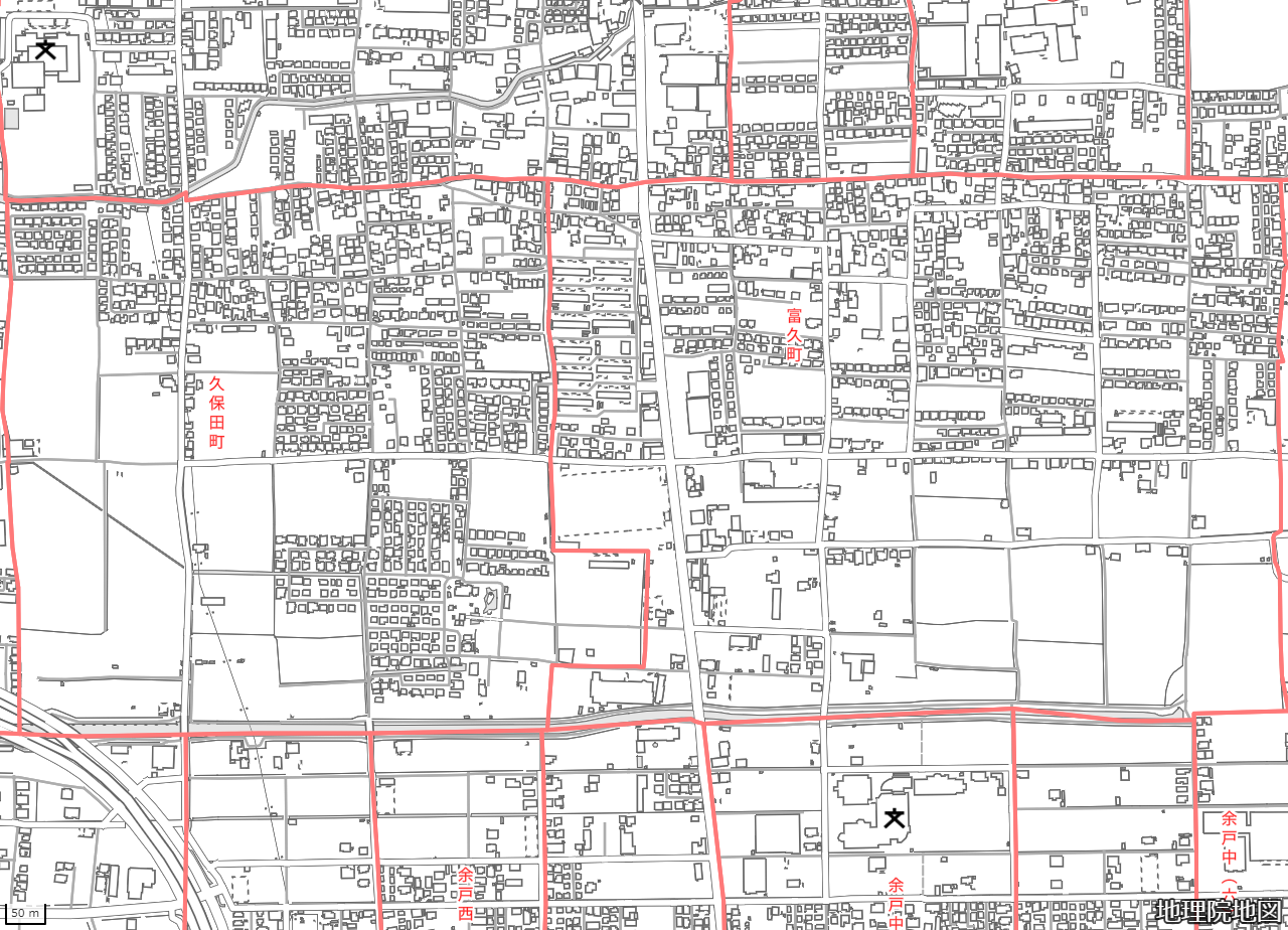 地図の内容は国土地理院が作成した時点の情報を反映しており、実際の現況とは異なる場合があります。現在は存在しない建物や道路、新たに整備された施設などが含まれることがありますので、あらかじめご了承ください。