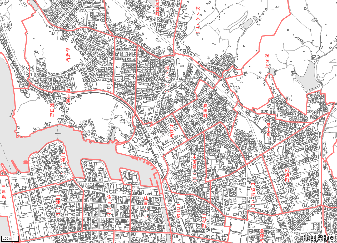 境界付近に建物が存在しない場合や、河川や海岸がある場合には、地図全体の視認性を高める為に一部境界を省略している場合がございます。
