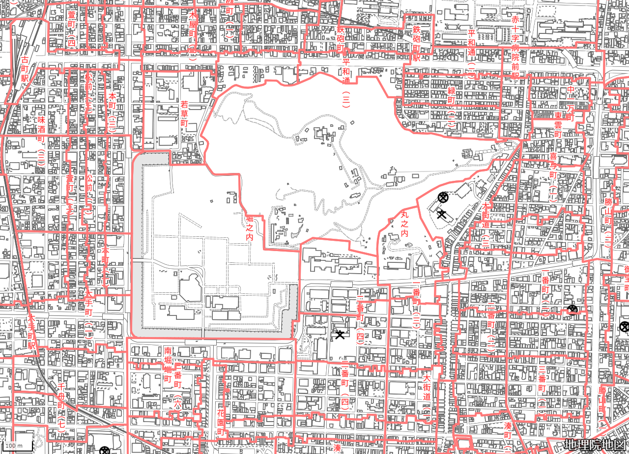 地図の内容は国土地理院が作成した時点の情報を反映しており、実際の現況とは異なる場合があります。現在は存在しない建物や道路、新たに整備された施設などが含まれることがありますので、あらかじめご了承ください。